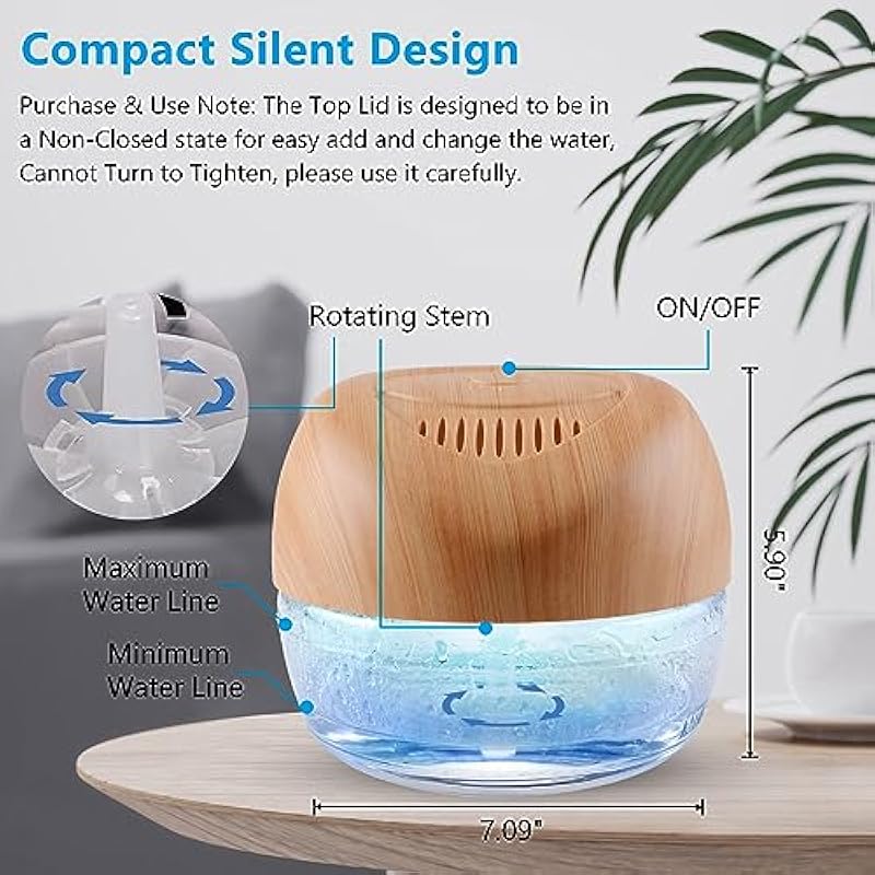 - LED Multi Color Night Light: With night light design, 7 colors changing mood lights, 1st press, power on, 7 led light on, irregular changes. 2nd press, led light off, operating quietly less than 30dB. 3rd press, shut off.
