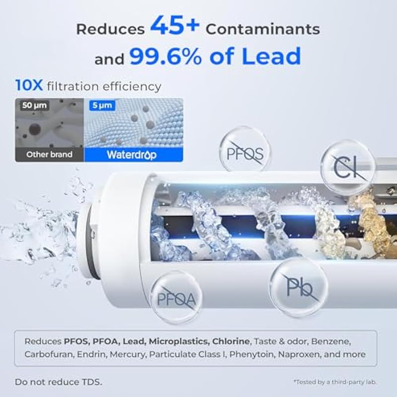 - 𝟒𝐱 𝐓𝐡𝐞 𝐅𝐥𝐨𝐰 𝐑𝐚𝐭𝐞, 𝟓𝐱 𝐓𝐡𝐞 𝐋𝐢𝐟𝐞𝐬𝐩𝐚𝐧: Asides ensuring an excellent filtration performance, the carbon fiber in this water filter system has 4x the flow rate of competing products. It filters all the water in 5 minutes. The 200-gallon or 2-month lifespan is also 5x that of competing products.