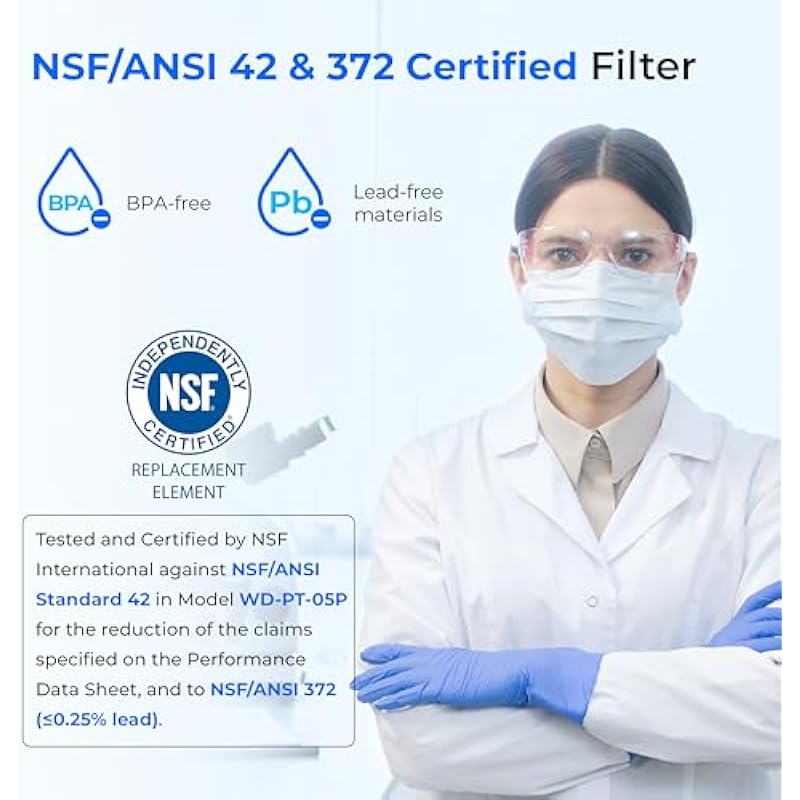 - [Authoritative Certified Filtration] The filter used in this water filter system has been tested and certified by NSF International against NSF/ANSI Standard 42 & 372. It can efficiently reduce chlorine, taste and odor, rust, sand and sediments, tested by a third-party lab, providing clean, pure water for you.