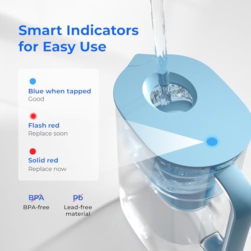 - Effective filtration: Using 6-stage water filter technology, Waterdrop water filter pitcher can reduce fluoride, chlorine, taste and odor, and heavy metals tested by a third lab. And it adds zinc, calcium and other minerals to your water.