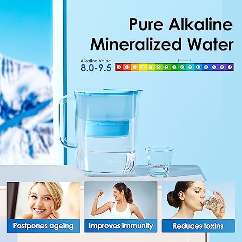 - Healthy alkaline water: Alkaline water helps slow down the aging process and regulate the pH value of your body. Waterdrop alkaline filter contains mineral material, and the pH level can be increased to 8.0-9.5. You can drink alkaline water at home.