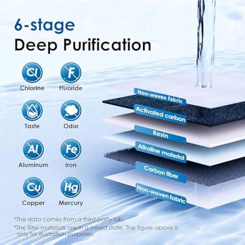 - Effective filtration: Using 6-stage water filter technology, Waterdrop Elfin water filter pitcher tests water to eliminate as many impurities as possible. It can reduce fluoride, chlorine, taste and odor, and heavy metals such as aluminum, iron, copper, and mercury, tested by a third lab. At the same time, it adds zinc, calcium, magnesium, selenium, lithium, iodine, and other minerals and trace elements to your water. Drink more water every day with Waterdrop.