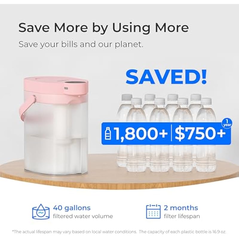 - [Extended Filter Life] Enjoy long-lasting performance with this water purifier that works up to 2 months or filters 40 gallons of water, depending on your local water conditions and usage. This means fewer filter changes and more time enjoying fresh, clean water. Our filters ensure that you and your family always have access to high-quality drinking water.