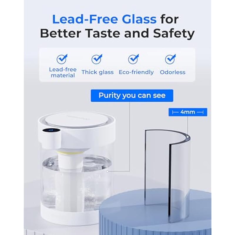 - Lead-Free Glass Material: The Waterdrop Glass Electric Water Filter Dispenser is made from lead-free, high-quality, eco-friendly glass for a safe and sustainable choice. Its shatterproof design ensures durability, while the odorless material keeps water tasting pure. With reliable safety and sleek, modern style, it delivers purity you can see and trust with every pour.