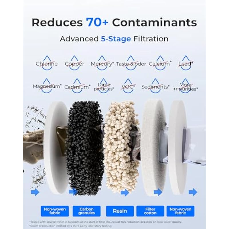 - 70+ Contaminants Reduced: This countertop water filter system provides cleaner, fresher water with 5-stage filtration designed to reduce 70+ contaminants, including chlorine, copper, taste and odor, and large particles. It also helps minimize calcium, magnesium, lead, cadmium, sediments, and VOCs. Independently tested by a third-party lab, it is designed to deliver a better hydration experience every time.