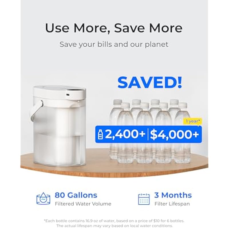 - Get Pure Water in 1 Second: With its electric design and one-key control, this water filter pitcher gives you experience beyond traditional pitchers and dispensers. You no longer have to wait for your water to filter. Simply press a button and get clean water instantly.