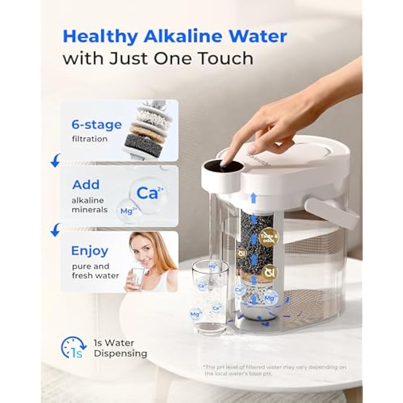 - Healthier Alkaline Water: Our rechargeable water filter dispenser with a replaceable filter instantly alkalizes your water, enhancing taste and adding essential minerals. It helps neutralize stomach acid while supporting stronger bones and teeth with every sip.