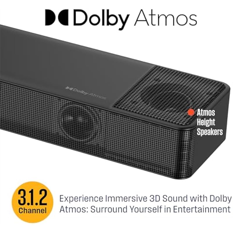 - Dolby Atmos Up-Firing Height Speakers: Enjoy Dolby technology that creates a more immersive and three-dimensional sound experience. Dolby Atmos treats sound as individual objects that can be placed and moved anywhere in your room making it feel as if sounds are coming from above, behind and all around you.