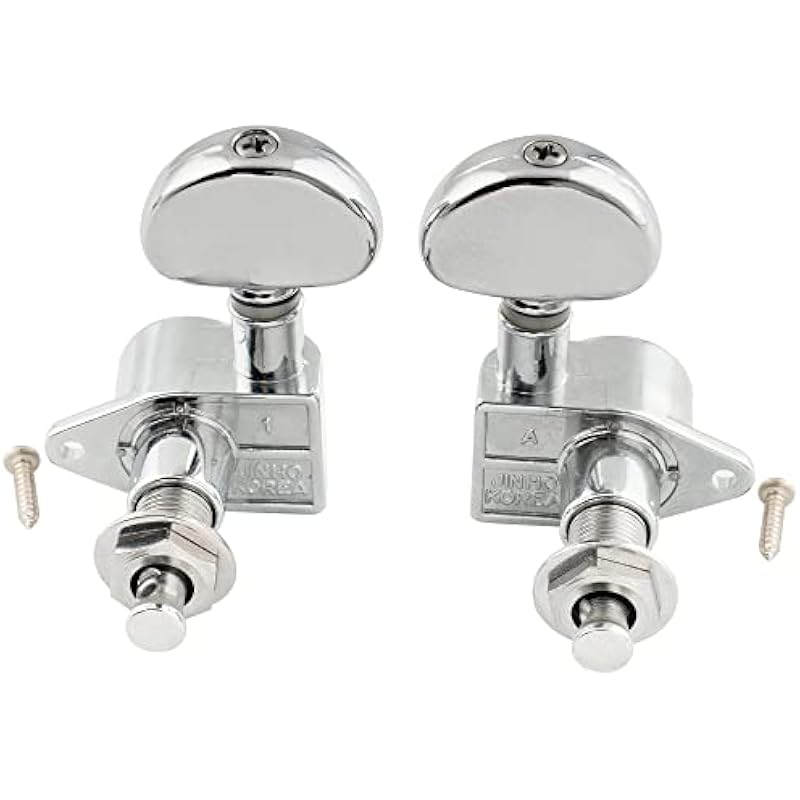 - Kidney Bean Button, 3×3 tuning pegs set, washers, bushings and mounting screws included