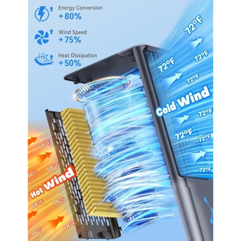 Neck Fan, Neck Fan, Portable Fan, Neck Fan, Cooling Plate, Semiconductor Cooling, Air Conditioner, Lightweight, Quiet, LED Included, Temperature Display, Type-C Rechargeable, 10,000 mAh