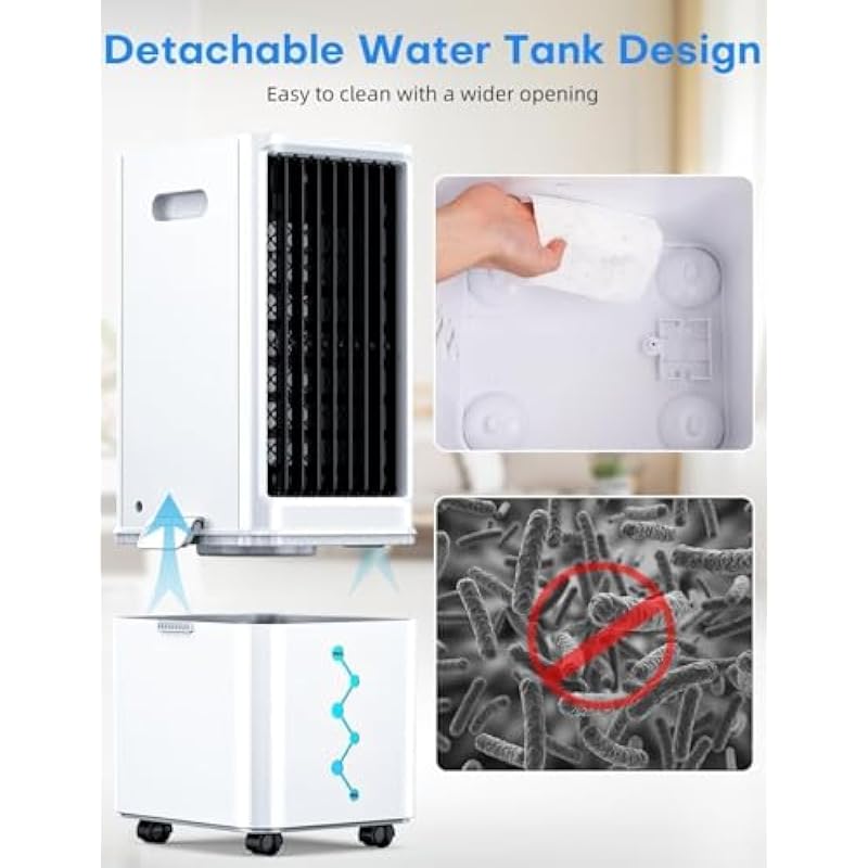 - Compact spot cooler that can be used in narrow spaces, such as dressing rooms, walk-in closets, kitchens, etc.; Compact size and comes with casters and handles for easy carrying; Driving mode is equipped with cooling air, dehumidifying, flowing and interior cleaner, so it can be used for a wide range of uses; With front out tank and upper back exhaust, it can be installed in a space saving on the wall; Comes with child lock to prevent accidental operation. Lamp lights up when tank is full