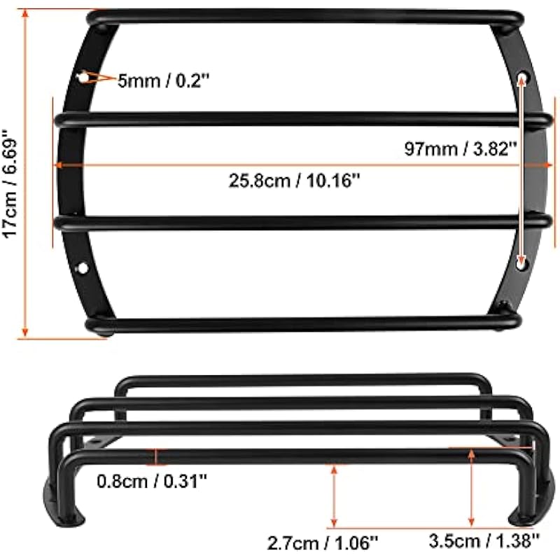 - Dimension: Mounting hole distance: 3.64”-4”, wide on the inner section: 8.86”, wide on the outer section: 10.16”, space between bars: 1.6”.