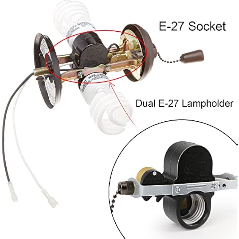 Zing Ear ZE-310D Light Socket Pull Chain Switch, 660W Daul E27 Lamp Holder with ZE-109M Swith for Ceiling Fan Light Kit Replacement Parts