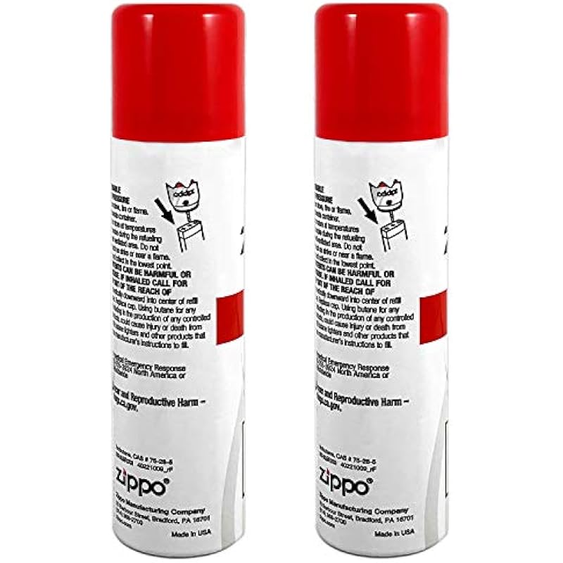 - 2-Pack Total. Zippo Butane Fuel 75 ml each can. Made in USA